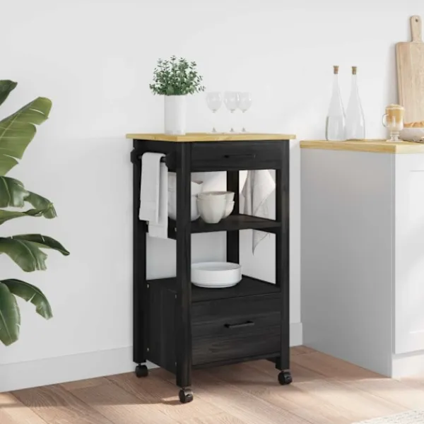- Ingåiande komponenter: Vagnen har praktiska funktioner som rymliga fack, hjul som rullar lätt och smarta krokar. Dessa gör det enkelt att hålla ordning och få snabbt grepp om köksprylarna. Med flera hyllor finns det gott om plats för att förvara bestick, köksredskap eller mat. Krokornas design gör att du kan hänga kökshanddukar eller verktyg nära till hands.