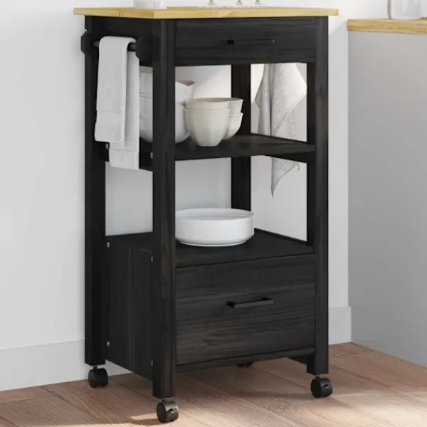 - Material: Långvarig och hållbar träkonstruktion gör att vagnen ser bra ut samtidigt som den tål slitage. Den stabila trästrukturen garanterar hållbarhet och stabilitet, vilket gör den till en pålitlig del i varje kök, även vid daglig användning. Plastdelarna bidrar också till funktionaliteten och ger en elegant look, perfekt för moderna hem.