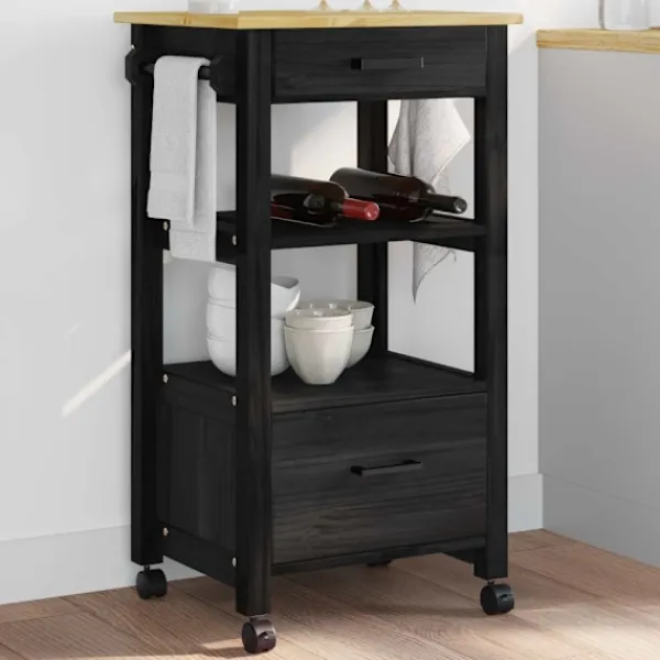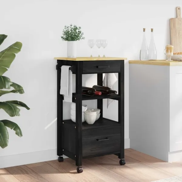 Den här moderna köksvagnen passar perfekt in i alla samtida kök med sin stiliga svarta finish och släta yta. Den är designad för att göra ditt kök mer funktionellt, och erbjuder massor av förvaringsutrymme och rörlighet, utan att kompromissa med stilen. Den är perfekt för att förvara köksprylar, eller som en flyttbar ö när du lagar mat.