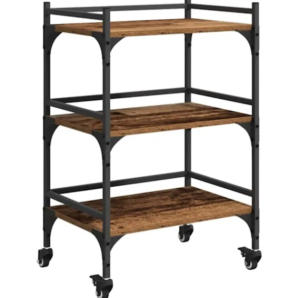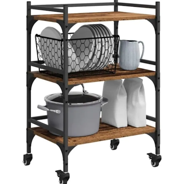 - Inkluderade komponenter: Utrustad med rymliga hyllor och en plan yta, ger vagnen bra förvaringsutrymme för köksartiklar och dekorativa föremål. Den står på stabila hjul som gör att den enkelt kan rullas dit du behöver den.