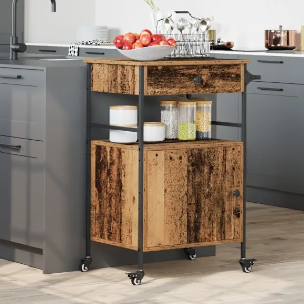 - Premium konstruerat trä: Vagnen är tillverkad av konstruerat trä som ger en stabil yta för dina grejer. Det här materialet är hållbart och klarar vridningar, perfekt för köket där du behöver något pålitligt.