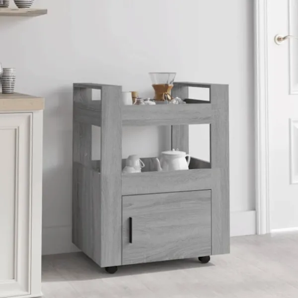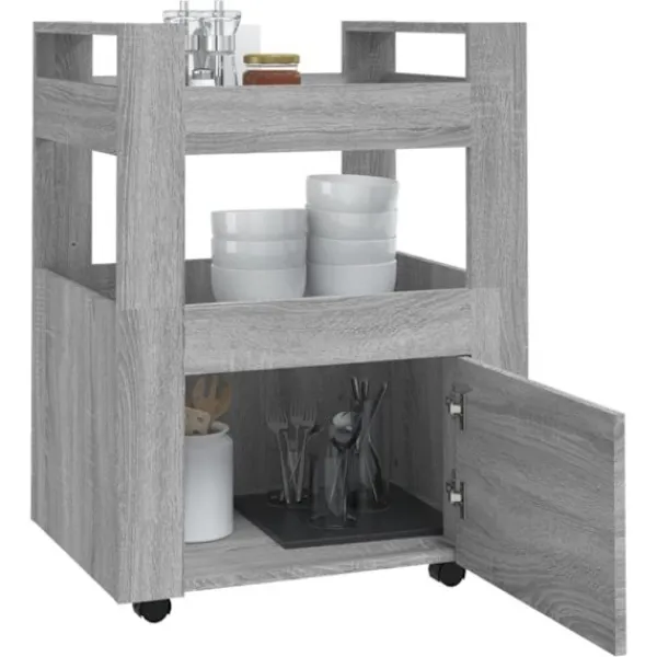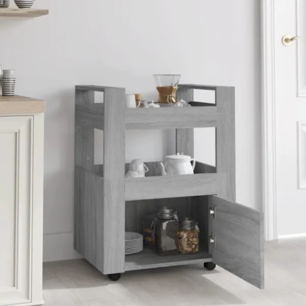 - Hållbart material: Det konstruerade träet är av exceptionell kvalitet med slät yta och är också starkt, stabilt och fuktbeständigt. Köksvagnen är tillverkad av konstruerat trä och är lätt att rengöra.