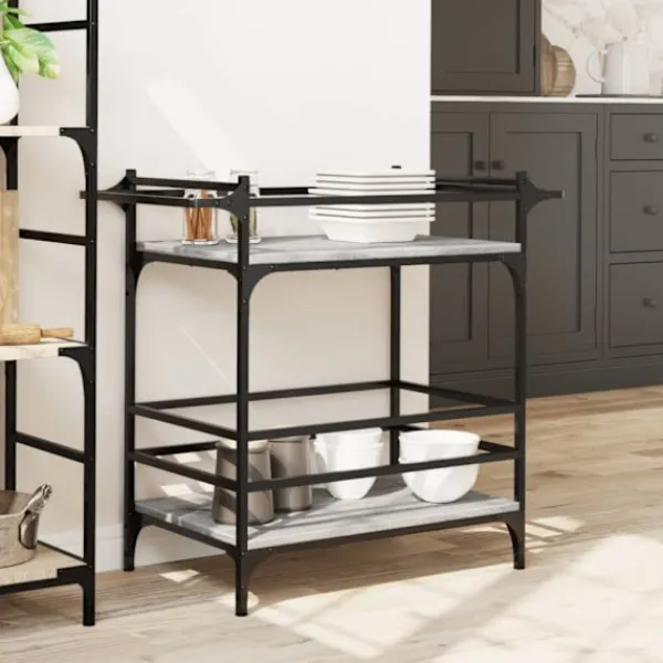 - Gott om förvaringsutrymme: Denna grönsaksvagn har gott om förvaringsutrymme för att hålla mat, skålar, tallrikar, recept och andra köksredskap inom räckhåll. Handdukshyllan på sidan är lämplig för att förvara dina handdukar nära till hands.