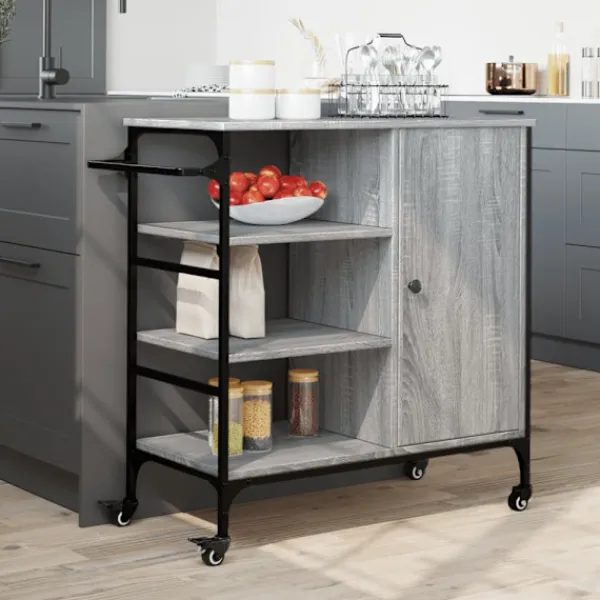 - Gott om förvaringsutrymme: Denna grönsaksvagn har gott om förvaringsutrymme för att hålla mat, skålar, tallrikar, recept och andra köksredskap inom räckhåll. Handdukshyllan på sidan är lämplig för att förvara dina handdukar nära till hands.