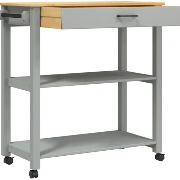 - Hållbart material: Massivt furuträ är ett vackert naturmaterial. Furuträ har raka fibrer, och kvistarna ger materialet en rustik utstrålning. Då den är tillverkad i massiv furu är köksvagnen slitstark och robust.