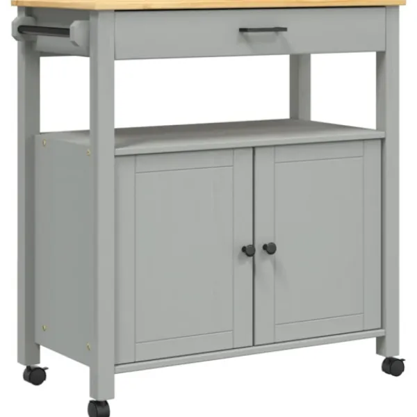 - Hållbart material: Massivt furuträ är ett vackert naturmaterial. Furuträ har raka fibrer, och kvistarna ger materialet en rustik utstrålning. Då den är tillverkad i massiv furu är köksvagnen slitstark och robust.