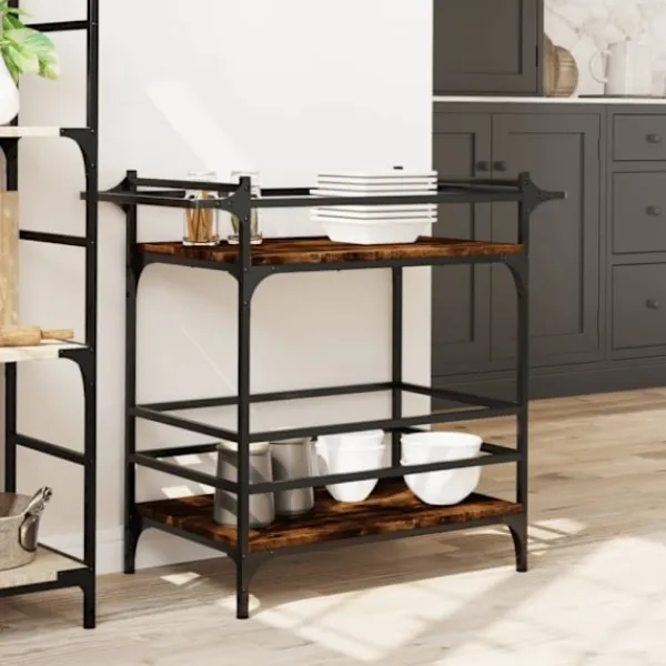 - Gott om förvaringsutrymme: Denna grönsaksvagn har gott om förvaringsutrymme för att hålla mat, skålar, tallrikar, recept och andra köksredskap inom räckhåll. Handdukshyllan på sidan är lämplig för att förvara dina handdukar nära till hands.