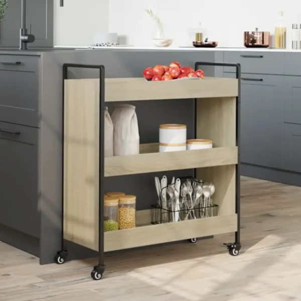 - Flexibel installation: Denna köksförvaringsvagn kan användas på två sätt. Du kan placera den på golvet med justerbara fötter för stabilitet på ojämna ytor eller fästa hjulen för enkel rörelse.