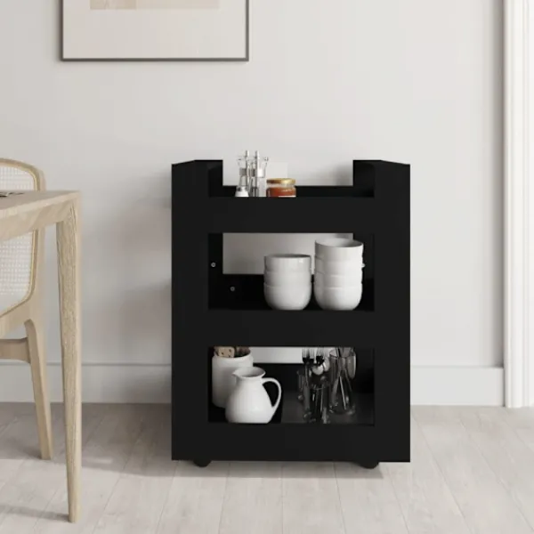 - Hållbart material: Det konstruerade träet är av exceptionell kvalitet med slät yta och är också starkt, stabilt och fuktbeständigt. Köksvagnen är tillverkad av konstruerat trä och är lätt att rengöra.