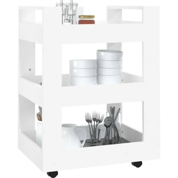 - Hållbart material: Det konstruerade träet är av exceptionell kvalitet med slät yta och är också starkt, stabilt och fuktbeständigt. Köksvagnen är tillverkad av konstruerat trä och är lätt att rengöra.