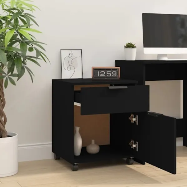 Detta klassiska dokumentskåp har svänghjul för enkel förflyttning och det har tillräckligt med plats för dina drycker, tidningar och prydnadssaker. Praktiskt material: Det konstruerade träet är av exceptionell kvalitet med slät yta och är också starkt, stabilt och motståndskraftigt mot fukt.Gott om förvaringsutrymme: Detta skåp med två lådor har gott om förvaringsutrymme för att hålla dina tillhörigheter organiserade och inom räckhåll.Displayfunktion: Den översta delen har en stabil yta där du kan placera din dricka, böcker eller dekorativa föremål.Lätt att flytta: Kontorsskåp kan lätt flyttas tack vare de medföljande fyra svänghjulen. 2 av hjulen är också låsbara, vilket håller skåpet på plats och ger stabilitet.