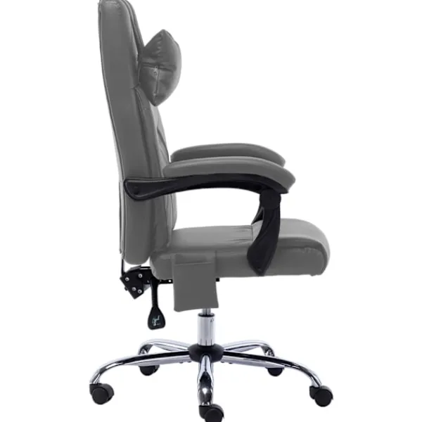 Denna kontorsstol har både massage- och avslappningsfunktion och kommer att bli ett utmärkt komplement till ditt kontor. Den är ergonomiskt utformad för att ge dig full komfort under din hektiska arbetsdag. Fåtöljen har hög rygg och en nackkudde med enpunktsmassage, böjda armstöd och tjockt vadderad sits och ger dig därför bra komfort under långa arbetspass. Den är höj- och sänkbar, vilket gör att du kan anpassa den till skrivbordshöjden och därmed uppnå bästa komfort, även för ryggen. Denna vilstol är utrustad med nylonhjul så att du enkelt att förflytta dig. Stolen kan lutas från 95° till 135° så du smidigt kan hitta ditt bästa läge för avkoppling.