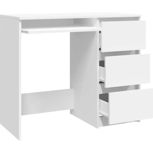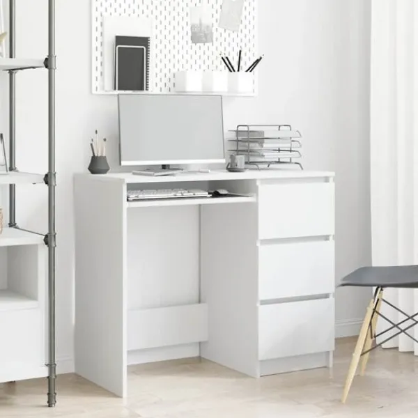 Förankra ditt kontor eller ditt hem i en diskret stil med detta snygga men eleganta skrivbord! Det är tillverkat av konstruerat trä, vilket säkerställer robusthet, hållbarhet och lång livslängd. Platsbesparande skrivbord: Med sin längd på 90 cm tar detta skrivbord upp mindre plats, vilket är lämpligt för ungdoms- och barnrum. Den har lådor där du kan placera dina dokument, böcker eller andra väsentligheter. Dessutom är skrivbordet lätt att rengöra med en fuktig trasa. Produkten är enkel att montera.