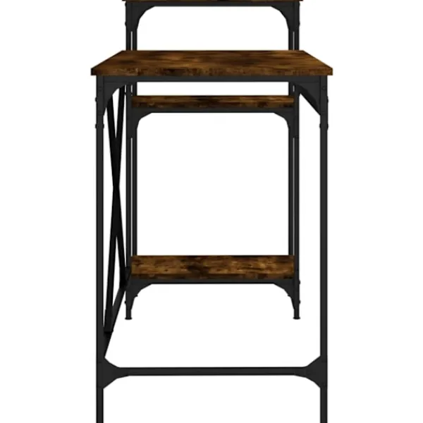 Detta skrivbord utstrålar en industriell charm och kommer bli ett blickfång i ditt hem eller på ditt kontor. Hållbart material: Det konstruerade träet är av exceptionell kvalitet med slät yta och är också starkt, stabilt och fuktbeständigt.Stabil ram: Kontorsbordets ram är gjord av järn. Järn är ett starkt och hårt material. Det är en favorit inom industri- och möbelkonstruktion.Gott om förvaring: Med 3 hyllplan har detta skrivbord gott om förvaringsutrymme för att hålla dina olika saker välorganiserade och inom räckhåll.Rymlig bordsskiva: Den stora arbetsytan på detta skrivbord gör att du har plats för din dator, skrivmaterial och andra nödvändigheter.Industriell stil: Skrivbordet tillför en charmig industriell stil till din nuvarande inredning. Det har en design inspirerad av gamla fabriker och industriutrymmen. Varning:För att förhindra att den välter måste denna produkt användas tillsammans med det medföljande väggfästet.