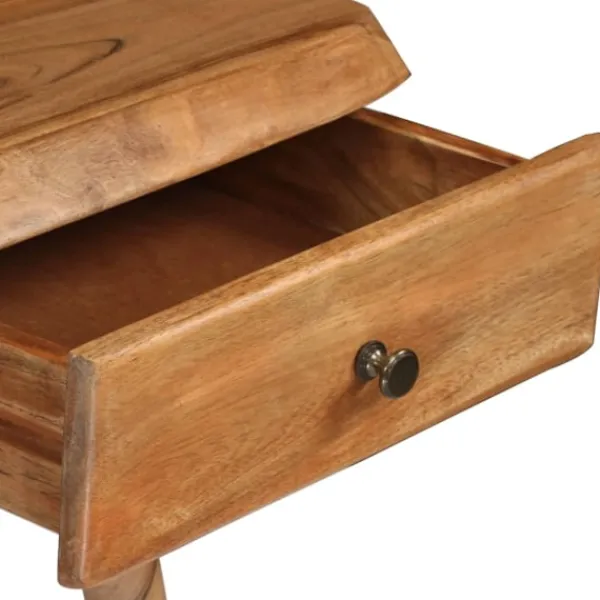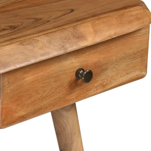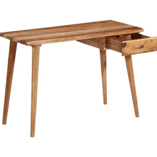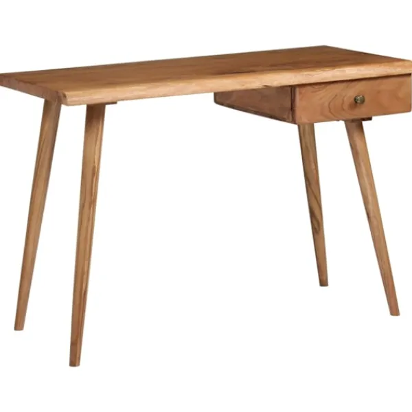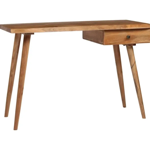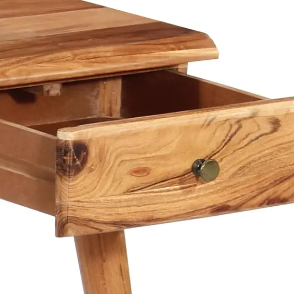 Vårt retro skrivbord i trä med levande kanter blir ett tidlöst tillägg i ditt vardagsrum! Detta skrivbord som är tillverkat i massiv akacia är väldigt stadigt och hållbart, det utstrålar en rustik charm i din inredning. Bordet har en unik design med en bordsskiva som överlappar lådan, som belyser dess naturliga vintage stil. Lådan tillhandahåller förvaringsutrymme för att hålla olika små föremål organiserade. Varje steg i tillverkningsprocessen utförs med största omsorg, från polering till lackering. Montering är väldigt enkelt. Observera: Träets färg och ådringar varierar från möbel till möbel vilket gör varje möbel unik och något annorlunda från de andra. Leveransen är slumpartad.