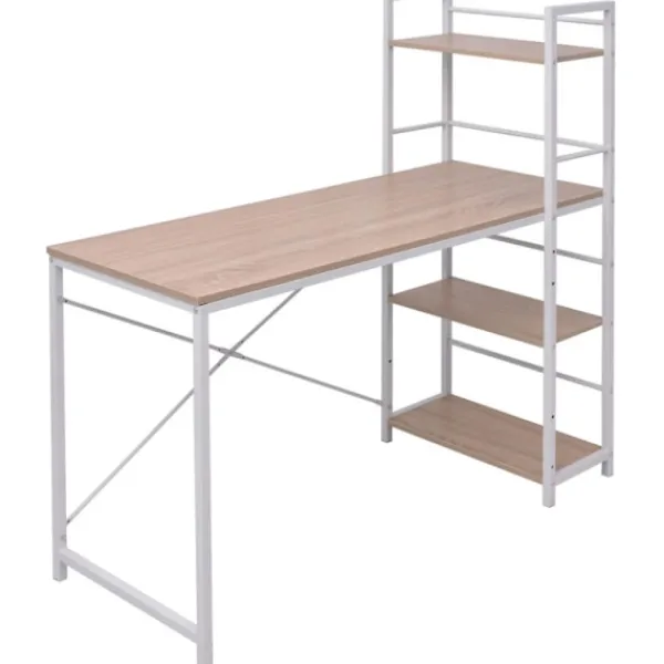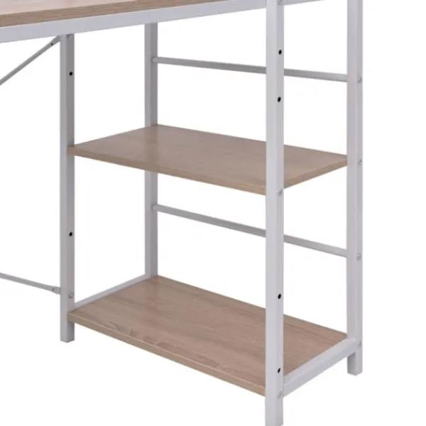 Detta unika och eleganta skrivbord har rymliga och stadiga hyllor. Den stora bordsskivan är perfekt att ställa dator och tillbehör på, vilket gör det till en ultimat arbetsstation för pappersarbete, kontorsarbete och studerande. De integrerade hyllorna ger extra förvaringsplats för dina böcker, pärmar, dokument eller fotoramar, prydnadsföremål, krukväxter, med mera.