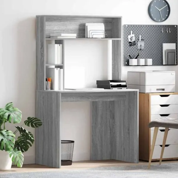 - Praktiska förvaringshyllor: Skrivbordet har brädhyllor som ger gott om plats för böcker och kontorsmaterial. Varje hylla är lättillgänglig, vilket håller din arbetsyta rensad och organiserad. Dessa smarta förvaringslösningar gör skrivbordet ännu mer funktionellt och hjälper dig att hålla fokus.