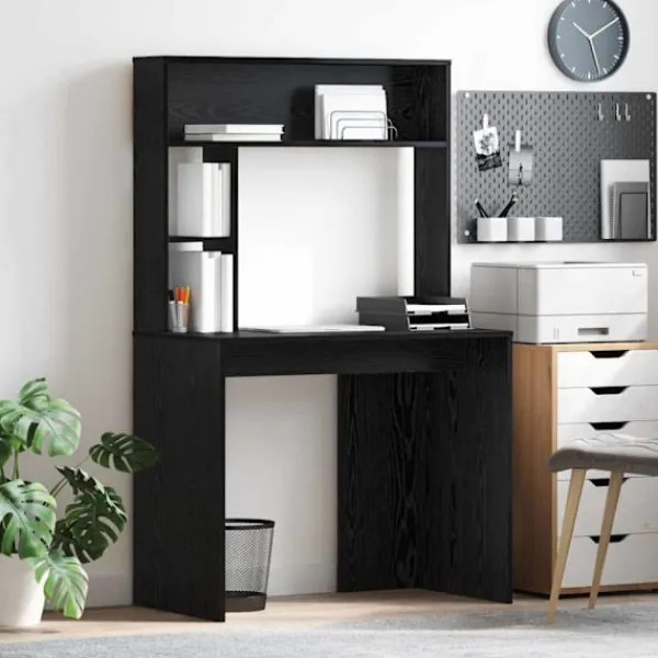 - Praktiska förvaringshyllor: Skrivbordet har brädhyllor som ger gott om plats för böcker och kontorsmaterial. Varje hylla är lättillgänglig, vilket håller din arbetsyta rensad och organiserad. Dessa smarta förvaringslösningar gör skrivbordet ännu mer funktionellt och hjälper dig att hålla fokus.