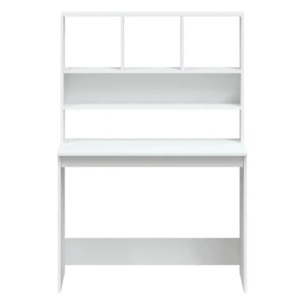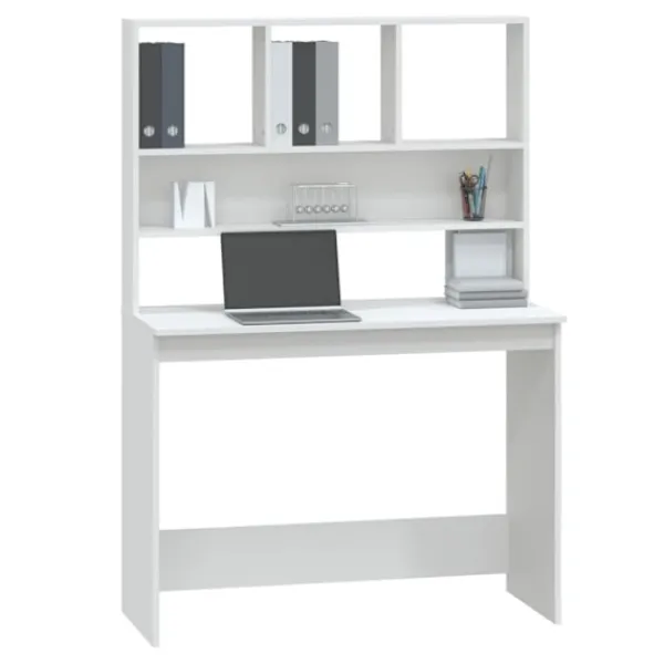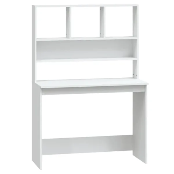 Detta skrivbord med hyllor blir ett praktiskt såväl som ett dekorativt val för ditt bostadsutrymme! Hållbart material: Det konstruerade träet är av exceptionell kvalitet med slät yta och är också starkt, stabilt och fuktbeständigt.Gott om förvaring: Detta skrivbord har gott om lagringsutrymme för att organisera alla dina mappar, dokument, påminnelser och PC-utrustning snyggt och inom räckhåll!Platsbesparande design: Tack vare sin kompakta design är studiebordet perfekt för alla små kontor, sovsalar eller små hus, och även om du bara föredrar att hantera det utrymme du har!Lätt att rengöra ytan: Skrivbordet är lätt att rengöra med en fuktig trasa. Varning:För att förhindra att den välter måste denna produkt användas med den medföljande monteringsanordningen för vägg Observera:Varje produkt levereras med en monteringsmanual i lådan för enkel montering.