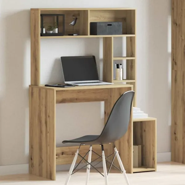 Detta skrivbord med hyllor är tänkt att vara ett praktiskt såväl som ett dekorativt val för ditt vardagsrum!