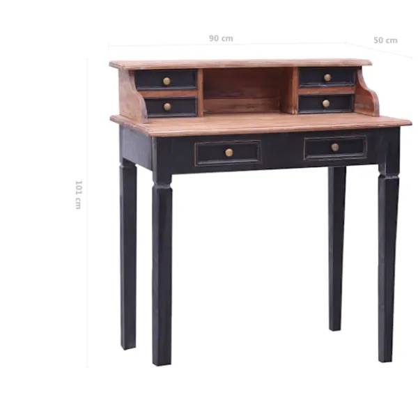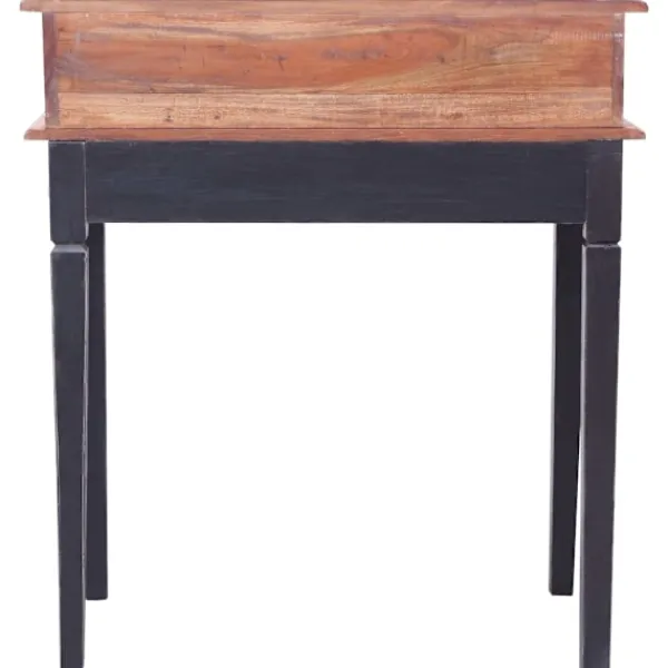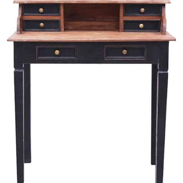 Detta skrivbord i trä utstrålar en rustik charm och blir ett elegant tillskott i din inredning. Skrivbordet är tillverkat i massivt mahognyträ, därmed är det oerhört hållbart och robust. Mahogny är ett tropiskt lövträ som sticker ut med sin skönhet, hållbarhet och färg. Speciellt hantverk har använts för att ge denna artikel ett vintage, varmt och autentiskt utseende. Du kan hitta spikar, skuvar, bultar fyllda, håligheter tillsammans med andra brister som ligger till grund för dess autentiska värde. Dessa brister delar en varm historia från dess förflutna och är aldrig avsiktligt gjorda. Dessutom har skrivbordet 6 lådor och 1 fack med gott om utrymme för att hålla dina viktiga föremål organiserade och inom räckhåll. Denna produkt är lätt att montera.
