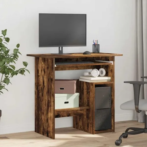Få en elegant charm i din inredning med vårt eleganta och moderna skrivbord! Praktiskt material: Det konstruerade träet är av exceptionell kvalitet med slät yta och har också styrka, stabilitet samt fuktbeständighet.Gott om förvaring: Facket på höger sida av detta kontorsbord har tillräckligt med utrymme för din PC. Dessutom finns det tillräckligt med utrymme för flera mappar under det lättanvända tangentbordsfacket.Bred applikation: Detta skrivbord är perfekt för alla trånga kontor, sovsalar, utrymmesbegränsade hus, eller andra platser.Visningsfunktion: Ovansidan av detta skrivbord är bra för att förvara böcker, fotoramar, krukväxter och ditt skrivmaterial. Observera:Varje produkt levereras med en monteringsmanual i lådan för enkel montering.