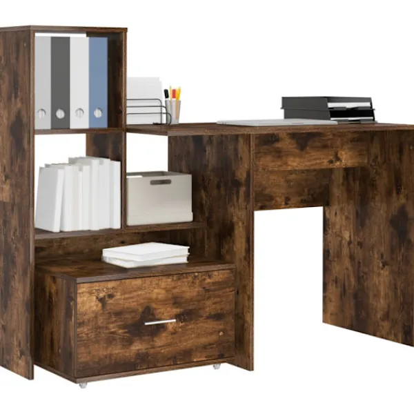 - Inbyggda förvaringslösningar: Med hyllor och lådor av konstruerat trä har detta skrivbord massor av utrymme för böcker, dokument och kontorsmaterial. Hyllsystemet gör det enklare för dig att organisera och hålla ditt skrivbord i ordning, vilket gör det både till en arbetsyta och förvaringslösning.