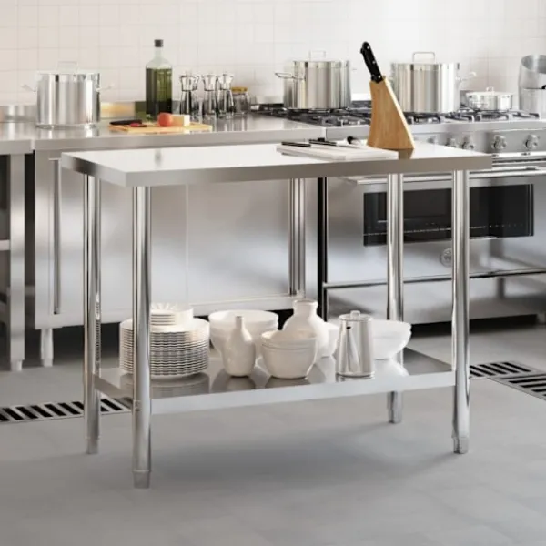 - Hållbar och stabil konstruktion: Arbetsbänken är tillverkad av rostfritt stål, som har motståndskraft mot korrosion och rost under många års pålitlig användning. Den släta ytan är lätt att rengöra och underhålla, vilket säkerställer ett hygieniskt område för matlagning.
