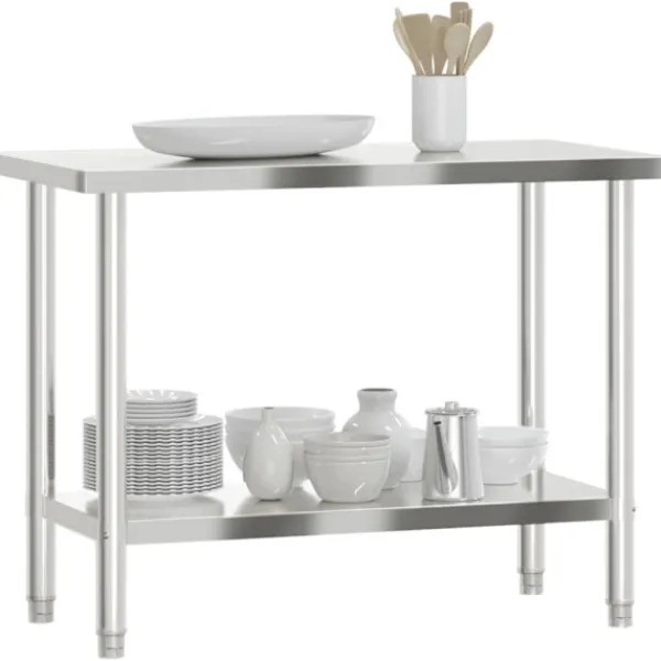 - Gott om arbetsplats: Förberedelsebordet i rostfritt stål är utformat med en bottenhylla för anpassat lagringsutrymme, med gott om lagringsutrymme för din mikrovågsugn, köksredskap eller andra verktyg du kan behöva.