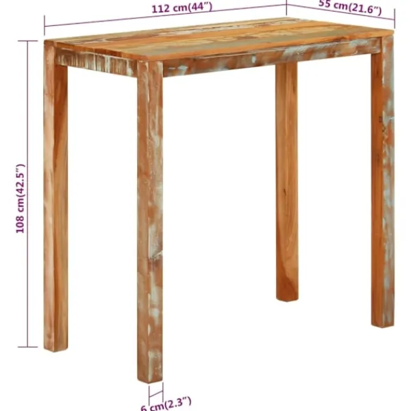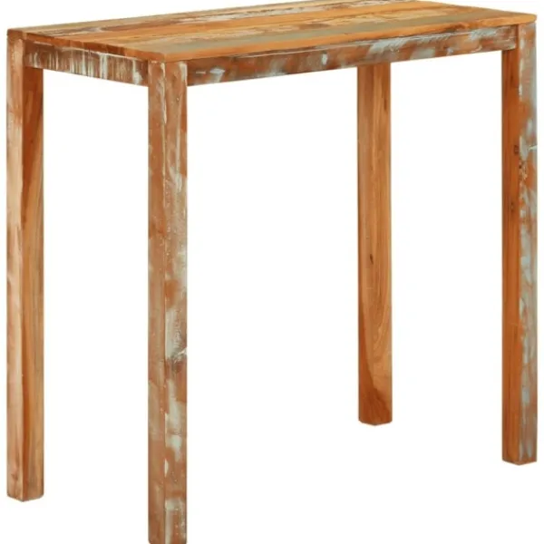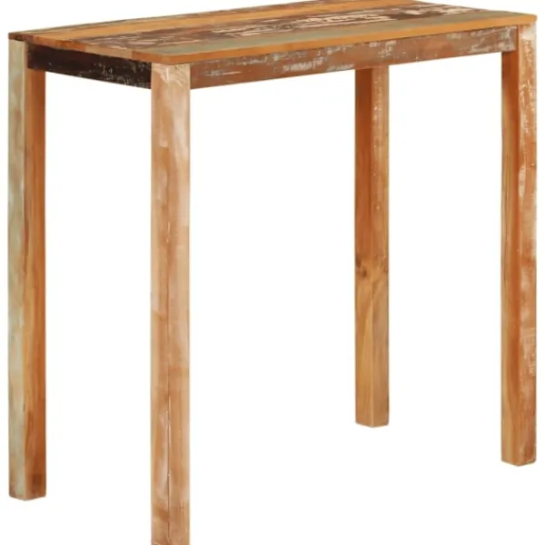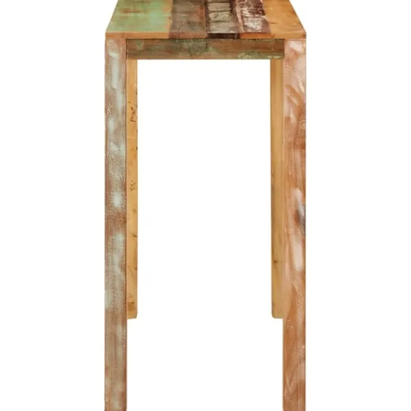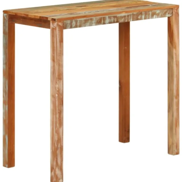 Det här barbordet i trä utstrålar en känsla av rustik charm i din matsal eller ditt kök. Massivt återvunnet trä: Massivt återvunnet trä består av återanvänt virke som teak, mangoträ, furu och bok. Dessa träslag är återvunna från gamla byggnader som fabriker, skjul och båtar. Detta gör det till ett fantastiskt miljövänligt alternativ inom möbeltillverkning. Eftersom varje möbel är handgjord kommer färgerna att variera från möbel till möbel. Du kan se blåa eller gröna och ibland orange, röda eller rosa nyanser.Robust ram: Bordets träram säkerställer robusthet och stabilitet.Stadig bordsskiva: Barbordet har en stadig bordsskiva, där du kan ställa mat och dryck. Observera:Varje produkt levereras med en monteringsmanual i lådan för enkel montering.Färgerna kan variera från möbel till möbel vilket gör varje möbel unik. Leveransen är slumpmässig, vilket säkerställer varje produkts exklusivitet och individualitet.