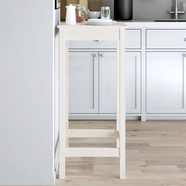 Njut av en trevlig måltid med familj och vänner runt detta vackra barbord i trä! Massivt furuträ: Detta partybord är tillverkat av massivt furuträ. Massivt furu är ett vackert naturmaterial. Furuträ har raka fibrer, och knutarna ger materialet sin signatur, rustikt utseende.Stabil ram: Träramen säkerställer robusthet och stabilitet.Robust bordsskiva: Den robusta bordsskivan är perfekt för att placera dina drycker, mat och prydnadssaker. Varning:För att förhindra att den välter måste denna produkt användas tillsammans med det medföljande väggfästet.