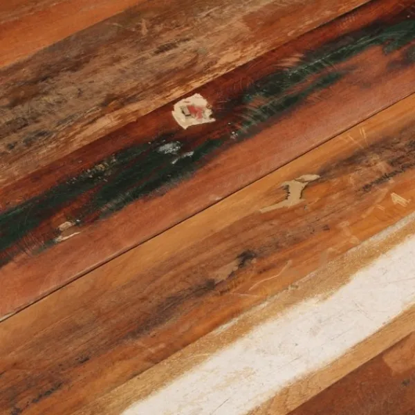 Denna bordsskiva i trä har ett enkelt och rent utseende och utstrålar en rustik charm inomhus. Dess massiva träkonstruktion gör den stabil och robust. Bordsskivan i massivt, tropiskt återvunnet trä som samlats in från gamla byggnader som lager, ladugårdar, bodar, kvarnar och herrgårdar. Träet är en blandning av mangoträ, lövträ, teak med mera och har karaktärsdrag från olika träslag. Tecken på slitage och synliga träfiber ger varje produkt en egen historia och ett unikt utseende. Varje steg i processen utförs med största omsorg, vare sig det är polering, målning eller lackering. Dessutom kan denna massiva träskiva användas till soffbord, sidobord, barbord, telefonbord, avlastningsbord, sängbord, hyllor eller som möbelbräda. Du kan även kombinera bordsskivan med valfria ben efter dina behov. Bordsskivan är enkel att rengöra med en fuktig trasa. OBS: Färgerna kan variera från produkt till produkt, vilket gör varje möbel unik. Leveransen är slumpartad.