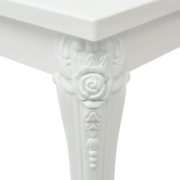 Den glänsande vita högglansiga ytan reflekterar ljuset, vilket kommer att bidra mycket till din middagsupplevelse. Detta matbord är tillverkat i Medium Density Fibreboard (MDF). Det har 4 robusta ben som är gjorda av lätt plast.
