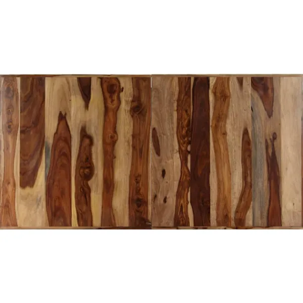- Material: Bordsskiva i massivt sheshamträ + pulverlackerade stålben