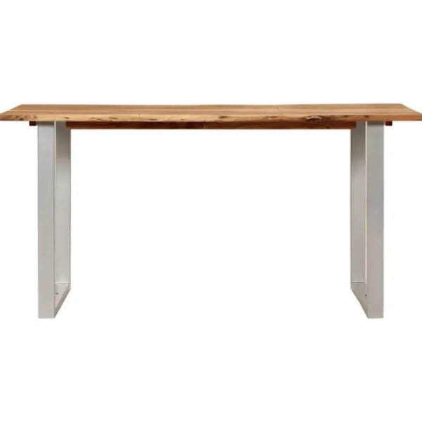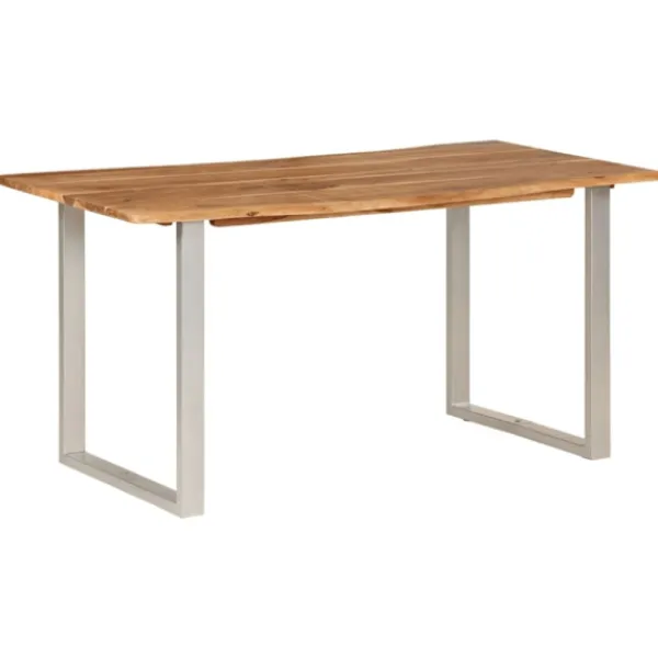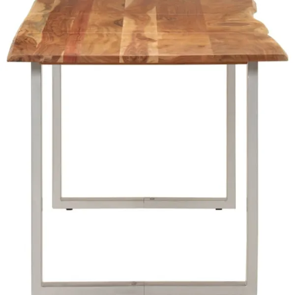 Matbordet är tillverkat i massivt akaciaträ, ett tropiskt lövträ som är känt för sin stadighet och sina rika ådringar. Bordsskivans form och kant är avsiktligt bearbetad så att du kan få en känsla av träets ursprungliga karaktär och utseende i din inredning! Varje steg i processen utförs med största omsorg, vare sig det är polering, målning eller lackering. Stålbenen kompletterar dess industriella designen och bidrar till dess stadiga konstruktion.