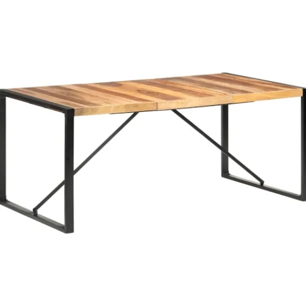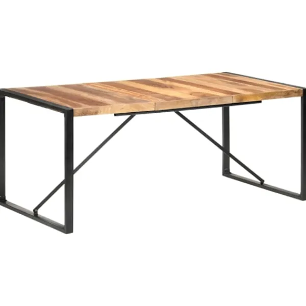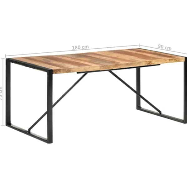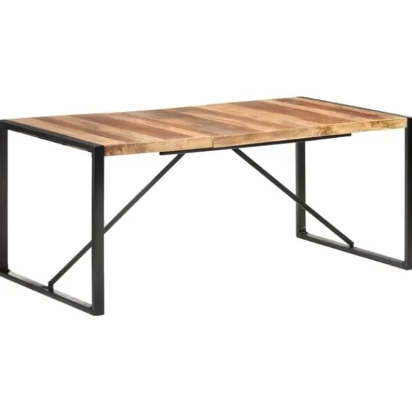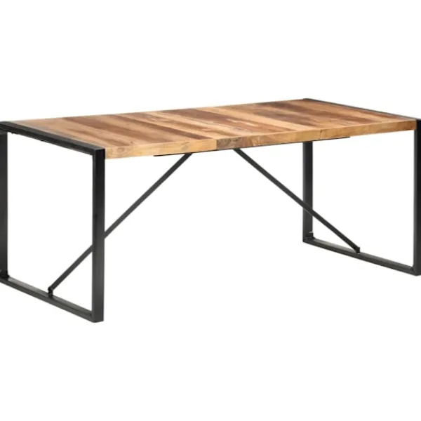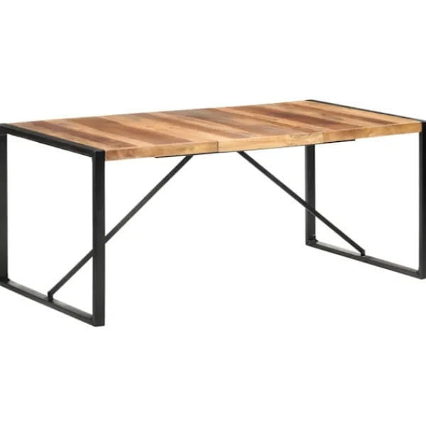 Detta eleganta träbord i industriell stil utstrålar en unik stil i ditt kök eller matrum. Träbordet är tillverkat i massivt akaciaträ och gummiträ. Massivt akaciaträ är ett lövträ med täta ådringar. Grovt akaciaträ är starkt nog att bära tung vikt och är även tåligt och hållbart. Matbordet är helt handgjort och varje steg i processen utförs med största omsorg, vare sig det är polering, målning eller lackering. Stålbenen fulländar dess industriella design och bidrar till dess stabila konstruktion. Den robusta bordsskivan är en perfekt plats att ställa drickor, vaser och andra prydnadssaker. Viktigt: Färgerna varierar från möbel till möbel vilket gör varje produkt unik och något annorlunda än de andra. Leveransen är slumpartad, vilket säkerställer varje produkts exklusivitet och individualitet.