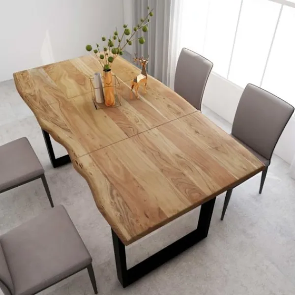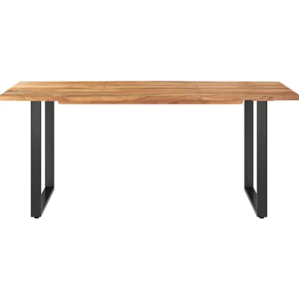 Matbordet är tillverkat i massivt akaciaträ, ett tropiskt lövträ som är känt för sin stadighet och sina rika ådringar. Bordsskivans form och kant är avsiktligt bearbetad så att du kan få en känsla av träets ursprungliga karaktär och utseende i din inredning! Varje steg i processen utförs med största omsorg, vare sig det är polering, målning eller lackering. Stålbenen kompletterar dess industriella designen och bidrar till dess stadiga konstruktion.