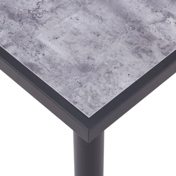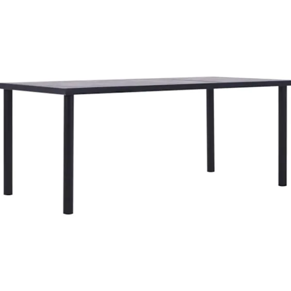 Matbordet har en slät bordsskiva med träådringar som tillför en utmärkande elegans till dina måltider. Den pulverlackerade metallramen bidrar till dess massiva konstruktion och skapar bra stabilitet och hållbarhet. Dessutom är bordet enkelt att montera och rengöra med en fuktig trasa.