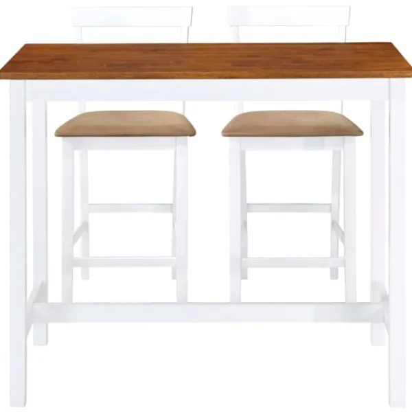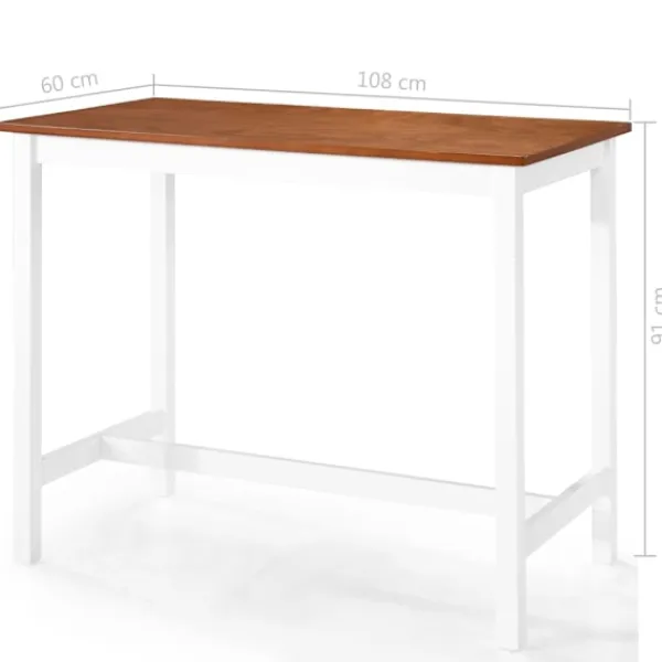 Detta barbord med stolar i trä har en enkel och stilren design, det blir ett praktiskt såväl som dekorativt inslag i alla hem, barer eller restauranger. Detta bord har en bordsskiva i MDF med träfaner och massiva träben för stadighet. Barbordet har belagts med en vacker ytbehandling genom slipning, målning och lackering för att ge det ett elegant utseende. Det är lätt att rengöra med en fuktig trasa. Barstolarna har en stark och hållbar ram i gummiträ. Tack vare deras skumvadderade sits är de bekväma att sitta på. Dessa barstolar kommer att ge ditt hem en rustik charm! Vid leverans ingår 1 barbord och 2 barstolar. Gruppen är enkel att montera.
