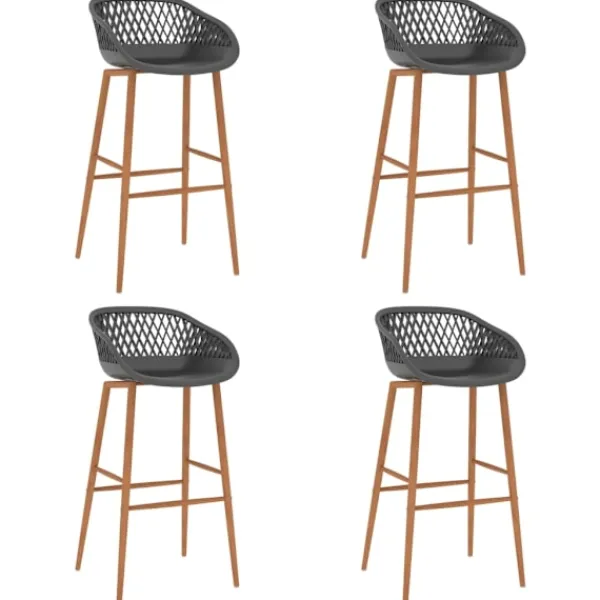 Denna bargrupp med modern design passar in i moderna hem, trädgårdar, barer eller restauranger. Dess stilrena och samtida design kompletterar din inredning. Bordsskivan är tillverkad i MDF, som är lätt att torka av. Den pulverlackerade metallramen bidrar till barbordets stabilitet och hållbarhet. Barstolarna har en ergonomisk sits med lågt ryggstöd med meshdesign. De är tillverkade av robust PP och stöds av starka metallben med träutseende, vilket gör dem stabila och hållbara.