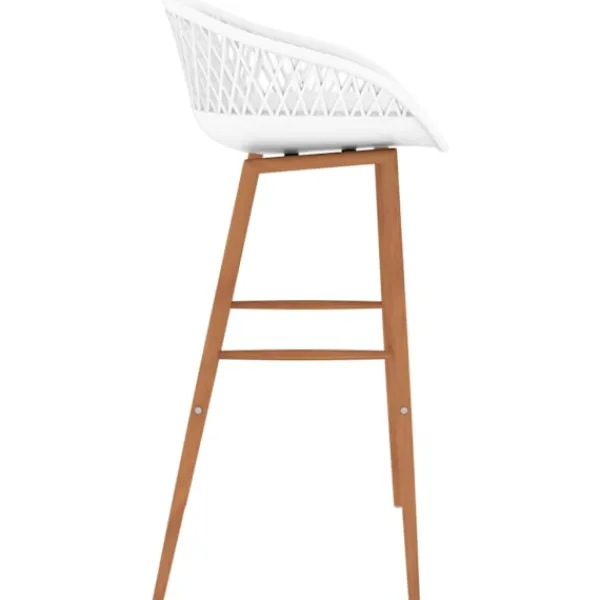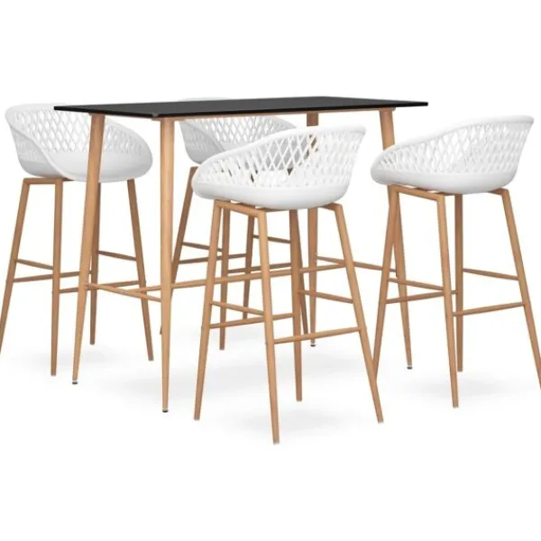 Denna bargrupp med modern design passar in i moderna hem, trädgårdar, barer eller restauranger. Dess stilrena och samtida design kompletterar din inredning. Vårt barbord har en hållbar bordsskiva i MDF och starka metallben med träutseende. Barstolarna har en ergonomisk sits med integrerat lågt ryggstöd med meshdesign. De är tillverkade av PP och stöds av starka metallben med träutseende, vilket gör stolarna robusta och hållbara.