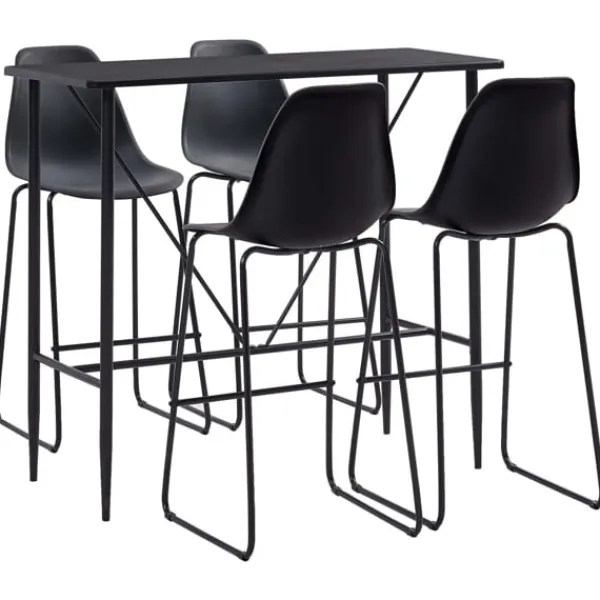 Denna bargrupp i 3 delar med modern design passar in i moderna hem, barer eller restauranger. Dess rena och moderna design kommer att komplettera alla inredningar. Bordsskivan är tillverkad i MDF som är lätt att rengöra. Stativet med belagt stål bidrar till bordets stabilitet och hållbarhet. Pubstolarna har en ergonomiskt utformad sits med integrerat ryggstöd i ett modernt, böjt utseende. Dessutom är de lätta att montera. Vår bargrupp är optimal för att njuta av ett glas vin i baren, ta en mumsbit eller för att använda som extra sittplatser när du har gäster. Vid leverans ingår ett barbord och 4 barstolar.