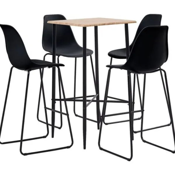 Denna bargrupp med modern design passar in i ett modern hem, trädgården, barer eller restauranger. Dess rena och samtida design kompletterar din inredning. Bordsskivan är tillverkad i MDF som är lätt att rengöra. Stativet med belagt stål bidrar till bordets stabilitet och hållbarhet. Pubstolarna har en ergonomiskt utformad sits med integrerat ryggstöd i ett modernt, böjt utseende. Dessutom är de lätta att montera. Vår bargrupp är optimal för att njuta av ett glas vin i baren, ta en mumsbit eller för att använda som extra sittplatser när du har gäster. Vid leverans ingår ett barbord och 4 barstolar.