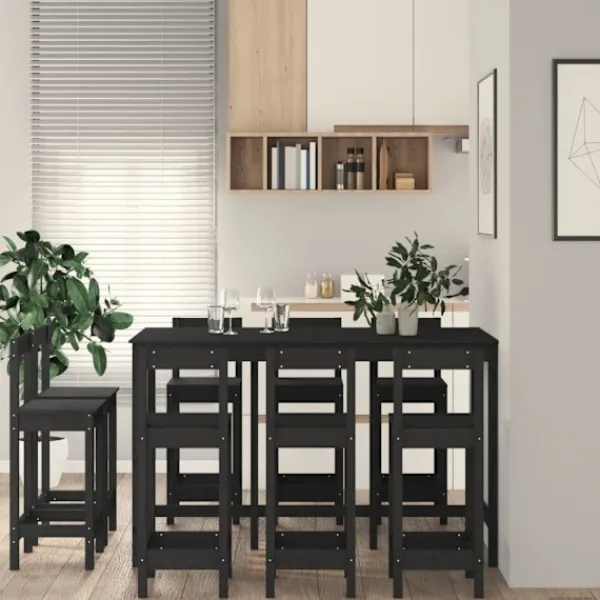 Ta dig ett glas vin och njut av en god måltid med vänner och familj runt detta barbord i trä! Massivt furuträ: Denna bar är tillverkad av massivt furuträ. Massivt furu är ett vackert naturmaterial. Furuträ har raka fibrer, och knutarna ger materialet sin signatur, rustikt utseende.Stabil ram: Träramen säkerställer robusthet och stabilitet.Robust bordsskiva: Barbordets robusta bordsskiva är perfekt för att placera dina drycker, mat och andra dekorativa föremål. Observera:Varje produkt levereras med en monteringsmanual i lådan för enkel montering.