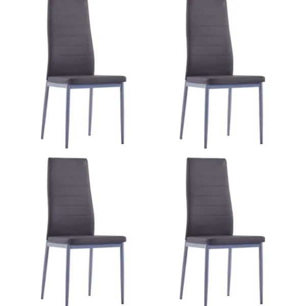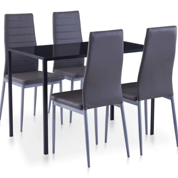 Detta matbordsset har en elegant och modern design, det är perfekt för dom som både vill ha komfort och elegans i sin matsal eller sitt kök. Bordsskivan är tillverkad av starkt, härdat glas som är enkelt att rengöra. Varje stol är klädd i konstläder. Den spänstiga, vadderade sitsen är väldigt bekväm. Leveransen omfattar 1 bord och 4 stolar.