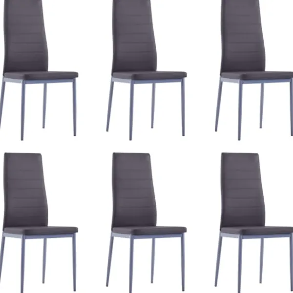 Denna svarta matgrupp i 7 delar har en elegant och modern design och det är perfekt för dem som både vill ha komfort och elegans i sin matsal eller kök. Bordsskivan är tillverkad av starkt, härdat glas som är enkelt att rengöra. Varje stol är klädd i konstläder. Den spänstiga, vadderade sitsen är väldigt bekväm. Leveransen omfattar 1 bord och 6 stolar.