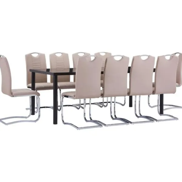 Vår matgrupp har en elegant och modern design och passar perfekt i moderna hem, matrum eller kommersiella restauranger. Dess stilrena och moderna design kommer att komplettera din inredning. Bordet har en slät bordsskiva i härdat glas som är enkel att rengöra med en fuktig trasa. Den pulverlackerade metallramen bidrar till dess massiva konstruktion och gör den mycket stabil och hållbar. Stolarna är klädda i mjukt konstläder och är tjockt stoppade för maximal komfort. Dess ergonomiska design gör matstolen mycket bekväm att sitta på. Tack vare den kromade stålramen är stolarna robusta och stabila. Dessutom har stolarna ett handtag i ryggstödet så att de enkelt kan flyttas. Matgruppen är enkel att montera. Vår matgrupp är perfekt när du bjuder in familj och vänner på middagsbjudningar.