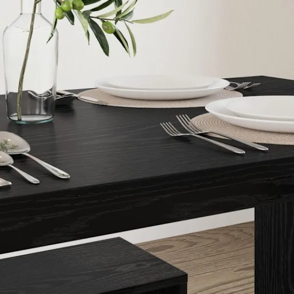 - Byggt av konstruerat trä: Matbordet och bänken är främst tillverkade av konstruerat trä, som är känd för sin hållbarhet och stabilitet. Detta material ger ett snyggt utseende som håller din inredning fräsch.