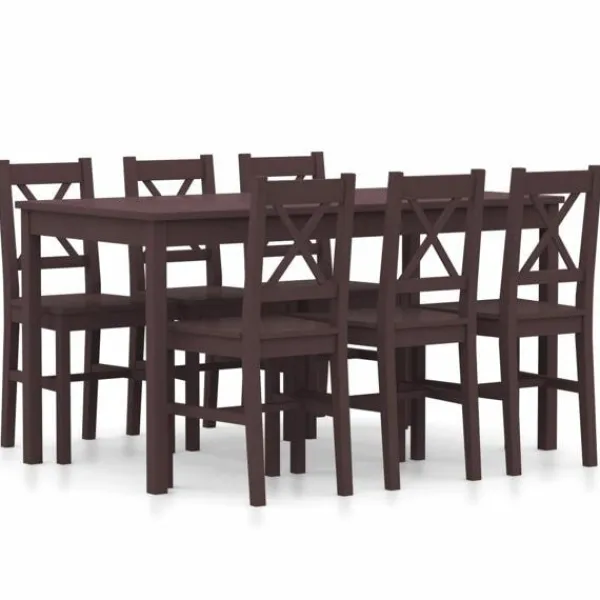 Ta in en minimalistisk och elegant charm i din inredning med vår matgrupp i trä! Den består av 1 bord och 6 stolar, det blir ett bra val i ditt kök eller vardagsrum. Eftersom gruppen är tillverkad i furu, är bordet och stolarna väldigt stadiga och hållbara. Dessutom är denna matgrupp enkel att montera och rengöra med en fuktig duk. Leveransen omfattar 1 bord och 6 stolar.