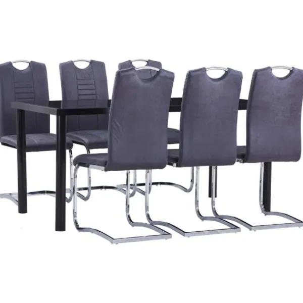 Vår matgrupp har en elegant och modern design och passar perfekt i moderna hem, matrum eller kommersiella restauranger. Dess stilrena och moderna design kommer att komplettera din inredning. Bordet har en slät bordsskiva i härdat glas som är enkel att rengöra med en fuktig trasa. Den pulverlackerade metallramen bidrar till dess massiva konstruktion och gör den mycket stabil och hållbar. Stolarna är klädda i mjuk konstmocka och är tjockt stoppade för maximal komfort. Dess ergonomiska design gör matstolen mycket bekväm att sitta på. Tack vare den kromade stålramen är stolarna robusta och stabila. Dessutom har stolarna ett handtag i ryggstödet så att de enkelt kan flyttas. Matgruppen är enkel att montera. Vår matgrupp är perfekt när du bjuder in familj och vänner på middagsbjudningar.